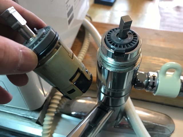 原因は内部に入っているカートリッジが劣化し、湯水の調整や止水に支障をきたしていたようです。
