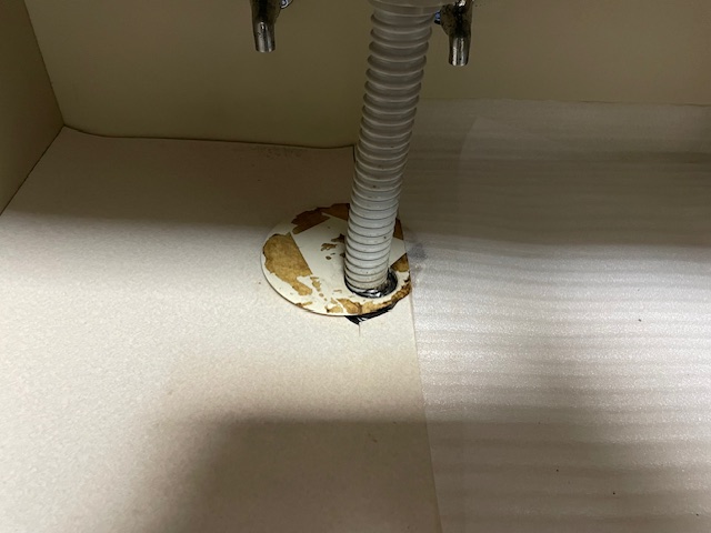 台所収納内の排水経路から匂いが上がってきている状態で、なんとか匂いを遮断できないかとのことでした。