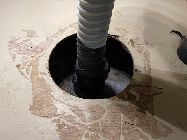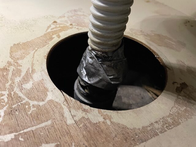 排水ホースと排水管に隙間がかなりあったため、防臭のためにテーピングで隙間を埋めることで改善しました。