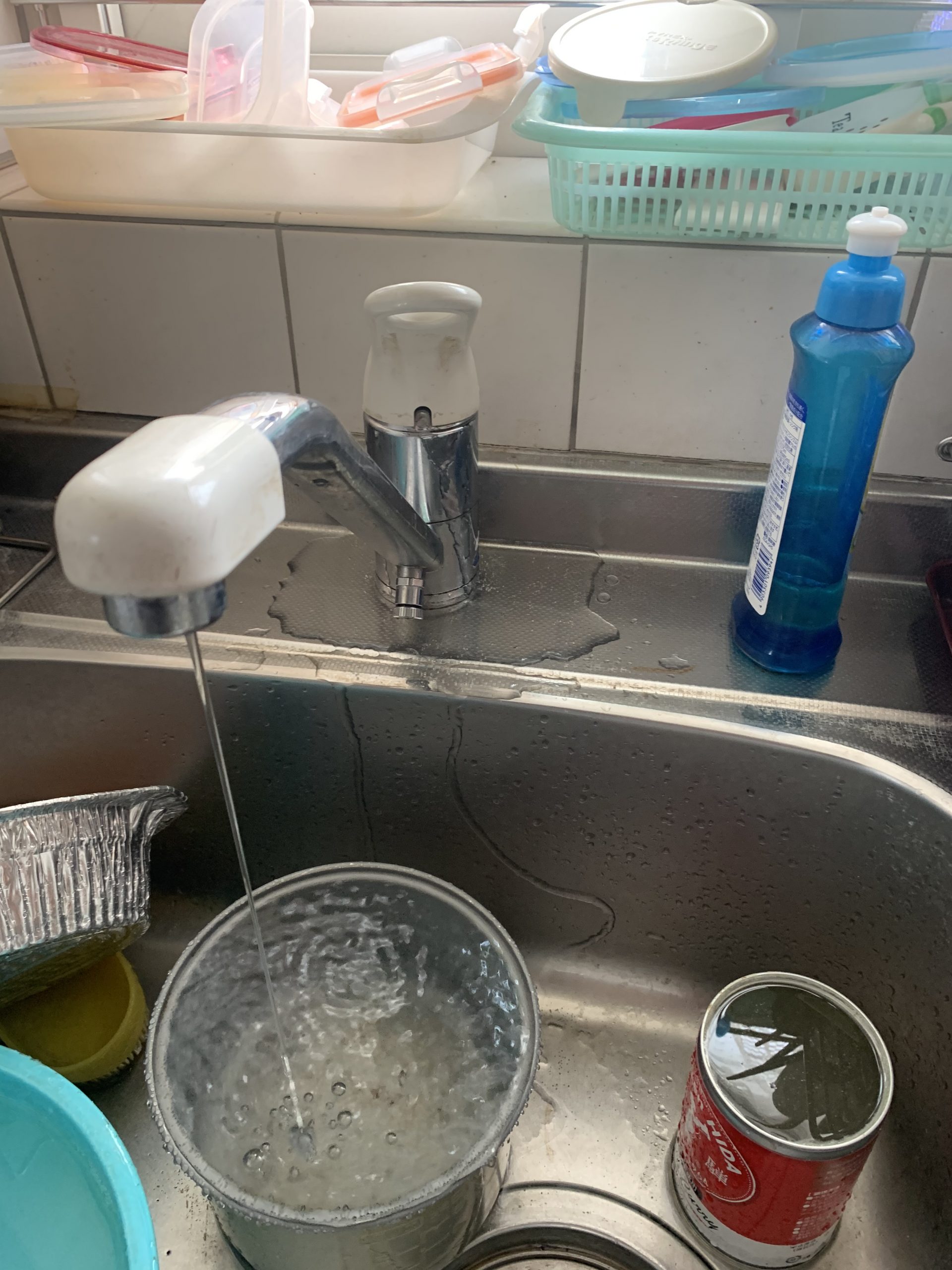しばらく家を空けていたそうですが、元栓を開けてみると台所蛇口の本体自体から水が噴き出してきたそうです。