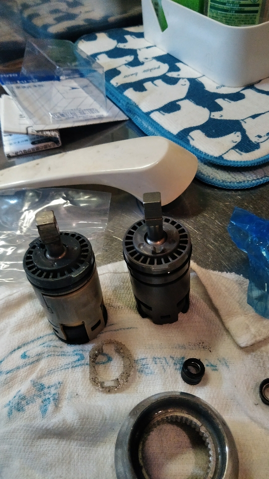本日は管理会社からの依頼で入居者の台所の蛇口の吐水口からポタポタ継続して水漏れしているので見て欲しいとの依頼で行ってきました。拝見すると年数的にも古い混合水栓で本体のカートリッジの経年による劣化で水が止まらなくなっています。レバーを外し水栓を分解しカートリッジを外し交換し水漏れは改善しました。更にレバーの上げ下げも軟らかくなり入居者の方も喜ばれていました。!(^^)!