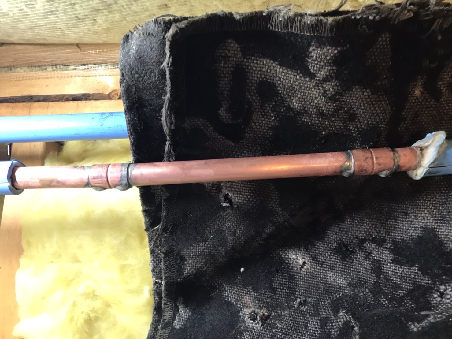 配管が膨張しているとそのまま取り付けられないので、ある程度の長さを切り落とし、再度銅管で溶接し直して改善しました。
