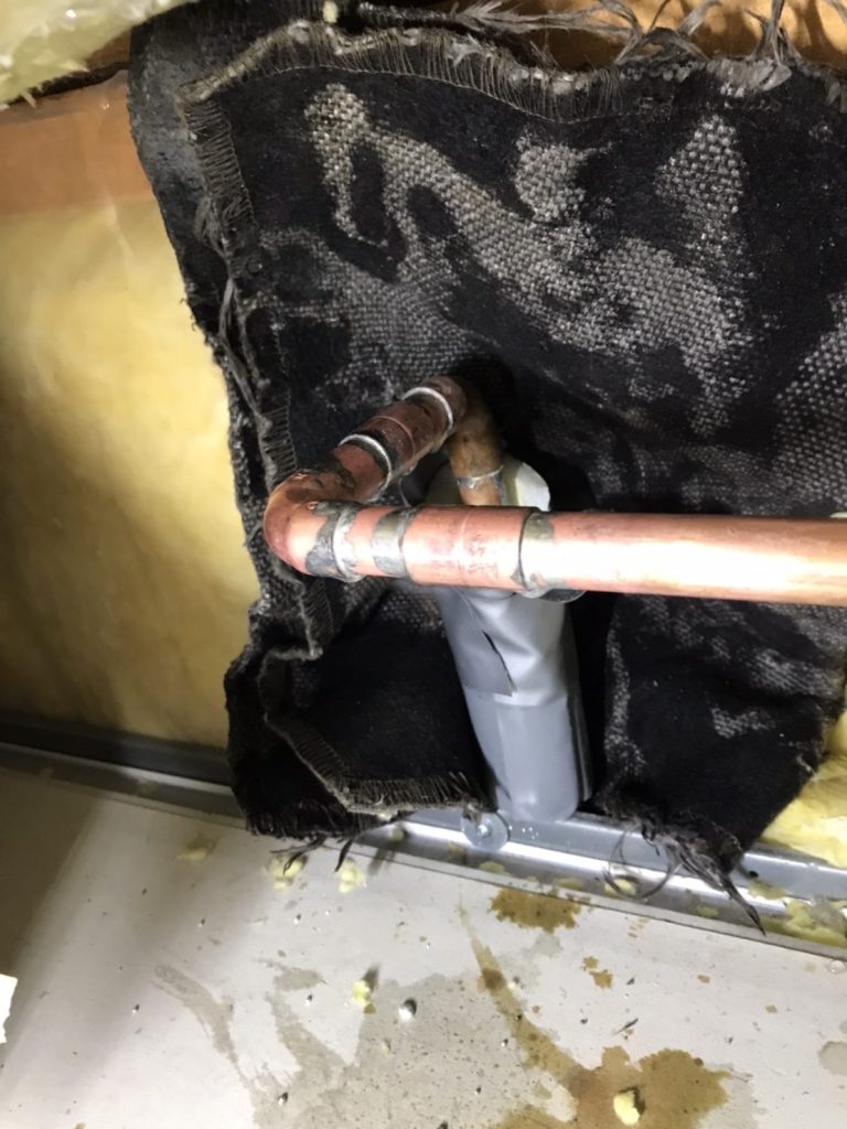 昨日同様、この部屋での水漏れ原因は凍結によるもので、配管の一部が繋ぎ目から外れてしまっていました。