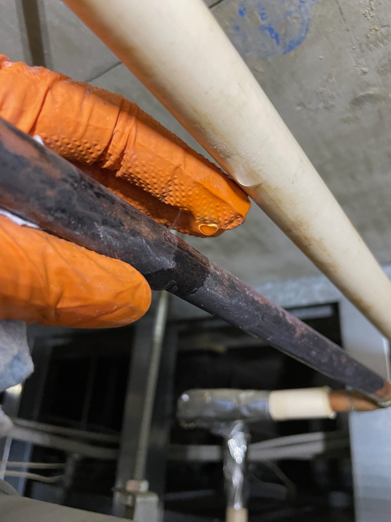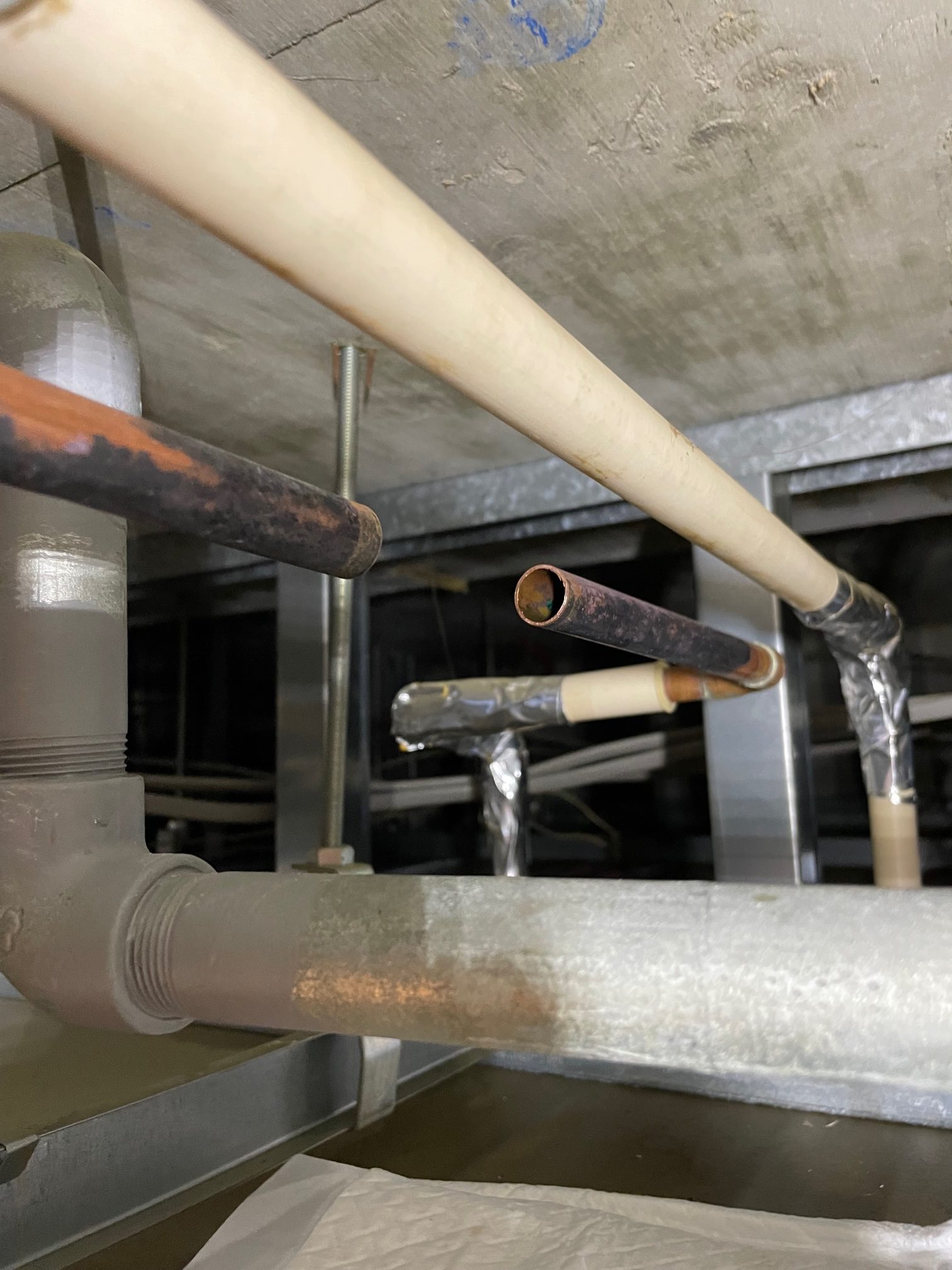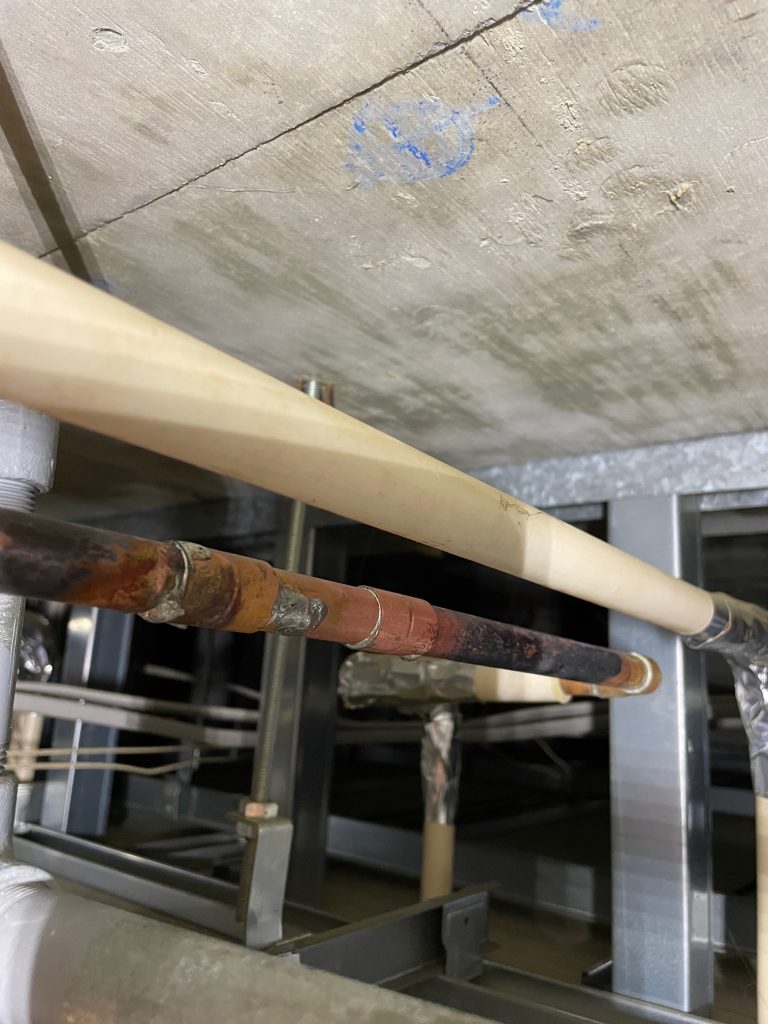 配管の一部が経年劣化によるピンホールを起こしており、溶接作業にて補修して改善しました。