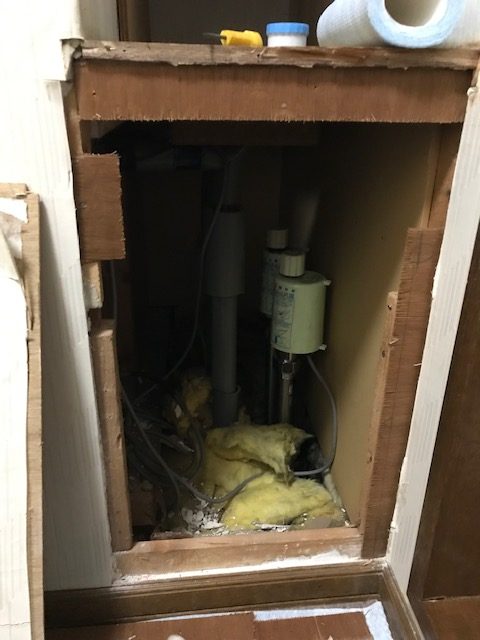 しかし、下の階の部屋を探しても水抜き栓は発見できず、機動してみると壁の中で動いている音が聞こえてきました。