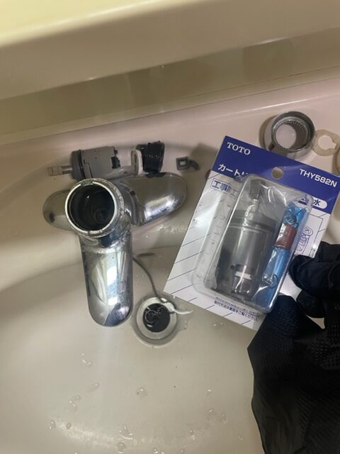 洗面水栓の水の止まりが悪く、レバーを強く下げてもだんだん止まりが悪くなってきた。