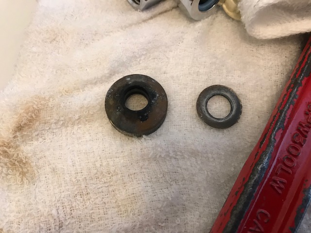 ハンドルを外してみると、その下のナットから水漏れしてきており、サビて劣化もしてパッキンも使い物になっていませんでした。