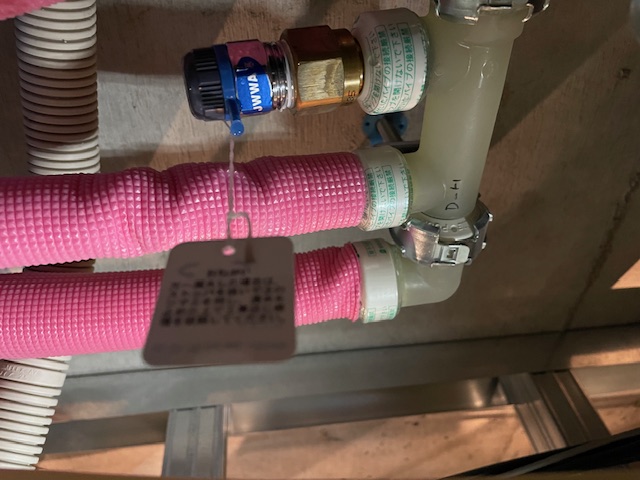 ヘッダーに取り付けられている吸気弁が水漏れを起こしており、ストッパーを抜いて増し締めして応急処置をしました。