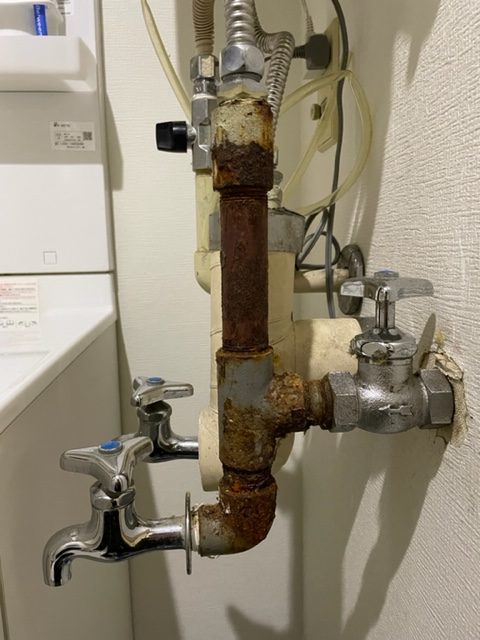 古い鉄管が全体的に腐食していたので、銅管にて配管をやり直して改善しました。