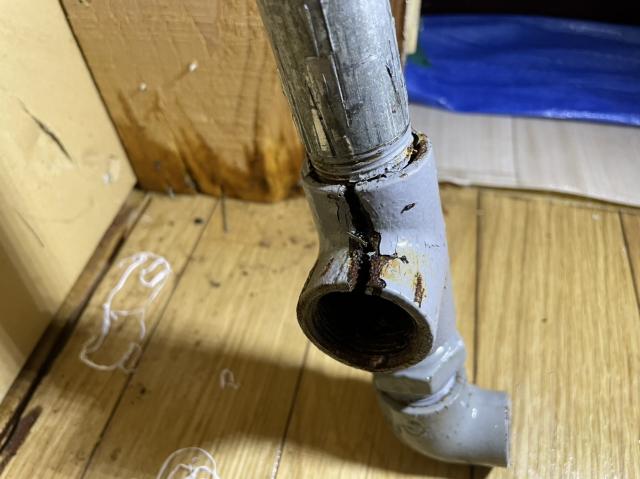 破裂部分を除去し新しい配管とやり直す際に前後の配管も