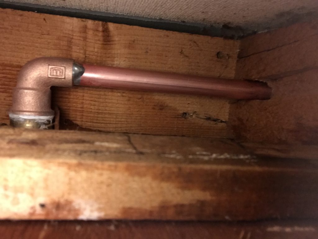 かなり狭いスペースでしたが、一旦キリのいいところで配管を切断し、新しい銅管部品で再度接続しなおしました。