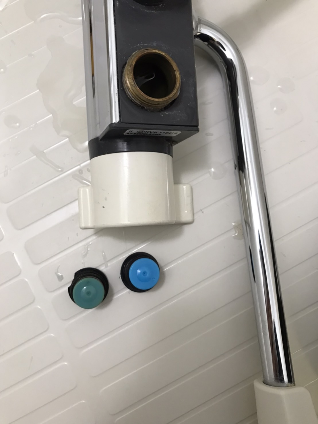 原因を調査すると、電気温水器の問題ではなく、浴室蛇口の部品の不具合ということがわかりました。