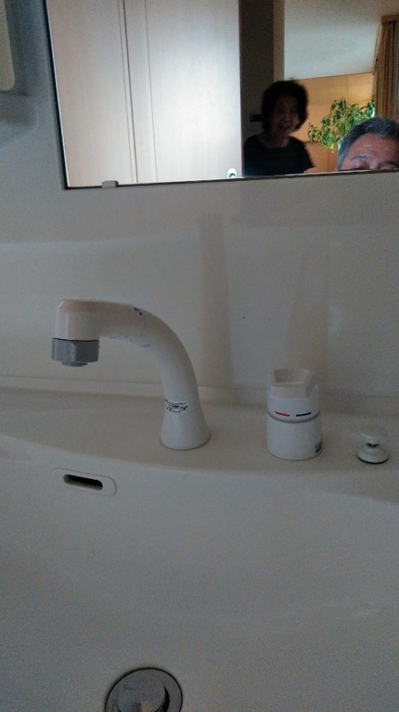 今日は洗面所のシンクの下が水濡れしているので見て欲しいとの案件に行ってきました。点検してみるとシャワーホースが劣化して下の水受けケースが満杯になって漏れているのとシャワーの吐水口からポタポタ水漏れしている状態です。話を聞くともう18年使用しているとの事、何が起きてもおかしくない時期です。部品交換で直りますが発注して期間を頂く旨を話すとすぐ直して欲しいとの事で本体交換して完了しました。