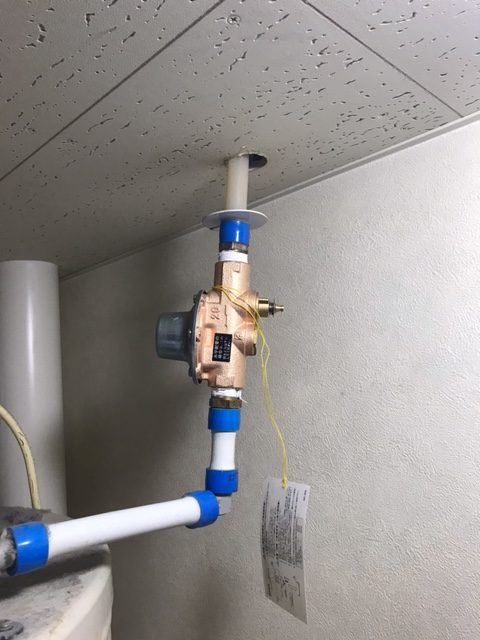 今日は管理会社からの依頼で電気温水器の減圧弁を交換して欲しいとの依頼で行ってきました。減圧弁とは字のごとく水道の圧力を減圧するもので、そのままの水圧だと機器に負担が掛かるのを防ぐ弁です。かれこれ26年使用しているのでオーナー様が交換して欲しいとの依頼でした。弁自体が破損し水漏れしたり凍結で破損したりします。