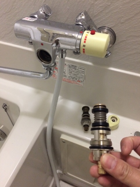 本日は浴室のシャワーと蛇口の切り替えハンドルを回すと両方から水がでてくるとの事で訪問しました。見てみるとハンドルをシャワーの方に回しても蛇口からも水が出てくる状態でした、今回は部品交換での対応なのでハンドル内にある切替えバルブを交換してきました。部品交換後はハンドルの切り替えでシャワーと蛇口の水の出し締めが無事に直りました(^O^)/お客様も両方から水が出てとても困られたのでとても喜ばれていました(*^-^*)