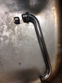 パイプを一度外してみるとポロっと・・・折れてますね、落ちなかったのが不思議なくらいです。