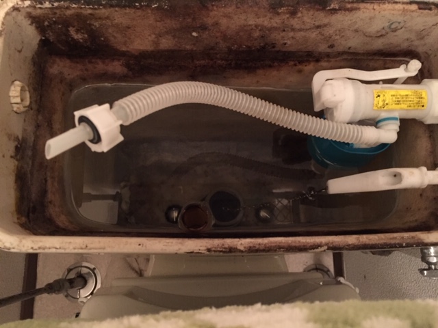 タンクの中を覗いてみると、上から見たら異常はありませんが、よくよく見ると異物が混入していました。