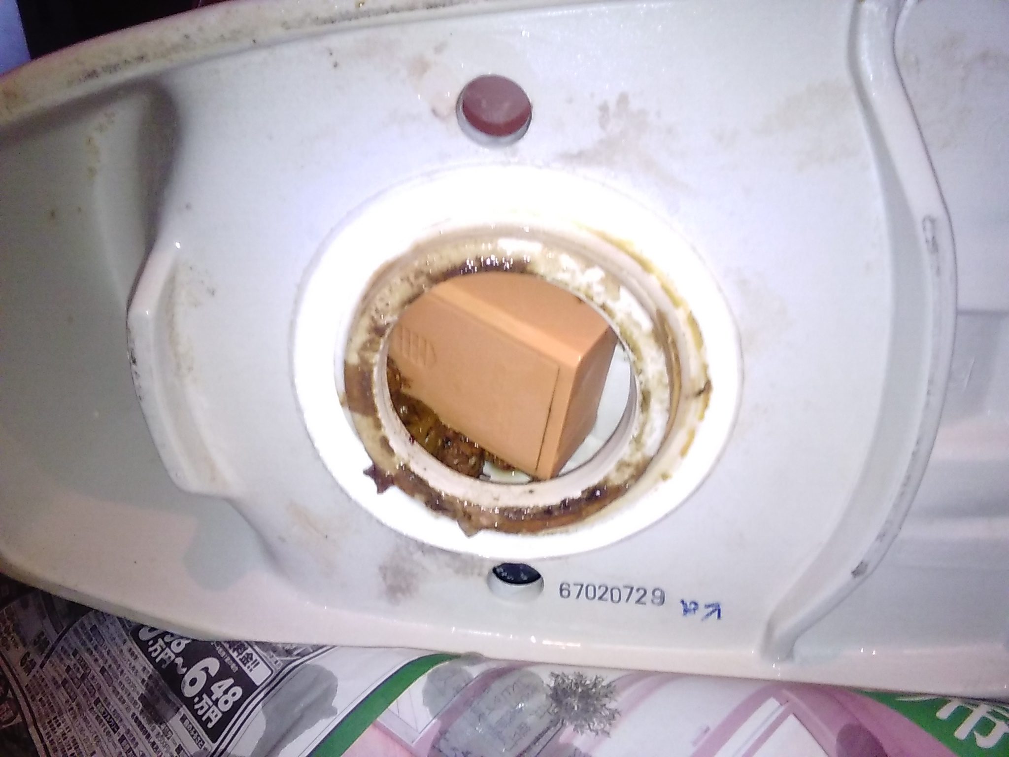 本日は、トイレに異物を流して詰まったとのご依頼があり出動しました。状況をお聞きするとお子様用の便座の部品を落としてしまったようです。アンパンマンの便座で頭の後ろに電池ボックスがあり、それが外れて落ちてしまったとのこと。アンパンマンが顏の一部をトイレに食べさせたのでしょうか( ゚Д゚) こうなるとトイレを外さないといけないため料金も高額になります。料金提示後、早速トイレを外してみると、見事にアンパンマンの顔の一部が挟まっていますね。流石にトイレも消化不良だったようです(笑) 結構大きな物だったため取り除くのに苦労しましたがどうにか取れました。トイレを戻して無事に流れるようになりお客様も喜んでいました。皆さんもアンパンマンには気を付けて下さい!