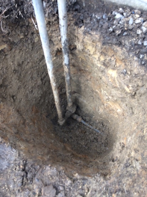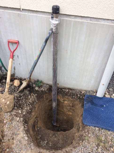 本日は、外の散水栓を使用しようと思ったら途中から折れ水が噴き出ていたとの事。今は水抜きして止まっているようですが、すぐに来てほしいと依頼を受けました。早速訪問し見てみると立ち上がり管の接手部から見事に折れている状況でした。お客様と話していると、これで3度目!お客様も次折れたら交換しようと思っていたようでした。見積もりをし工事日の打ち合わせなのですが予定が合わなく、本日なら出来る旨を伝えると、すぐにやってほしいとの事で即日施工いたしました。部材などを取りに行き交換作業をさせていただきました。掘削が大変”(-“”-)” この辺の土質は粘土らしく大変でした。でも無事に交換し、お客様も大変お喜びでした(^^♪