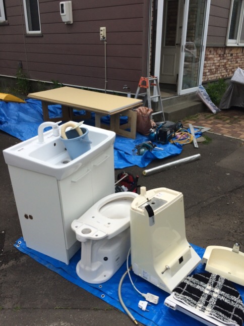 本日は、以前に水漏れして床が濡れてくるとの依頼で訪問したお客様の家の改修工事を致しました。以前壁の中で水道管に穴が開いていて床から床下断熱材から水びたしになっていたので、床・壁の張り替え工事を致しました。一回、トイレ・洗面などを取り外し、トイレ床・洗面所床などを剥がし濡れた断熱材を入れなおし床を張りなおしてからCF・クロスなどを新しく貼り直してからトイレや洗面台を設置していきました。お客様も新しくなり大変お喜びでした。