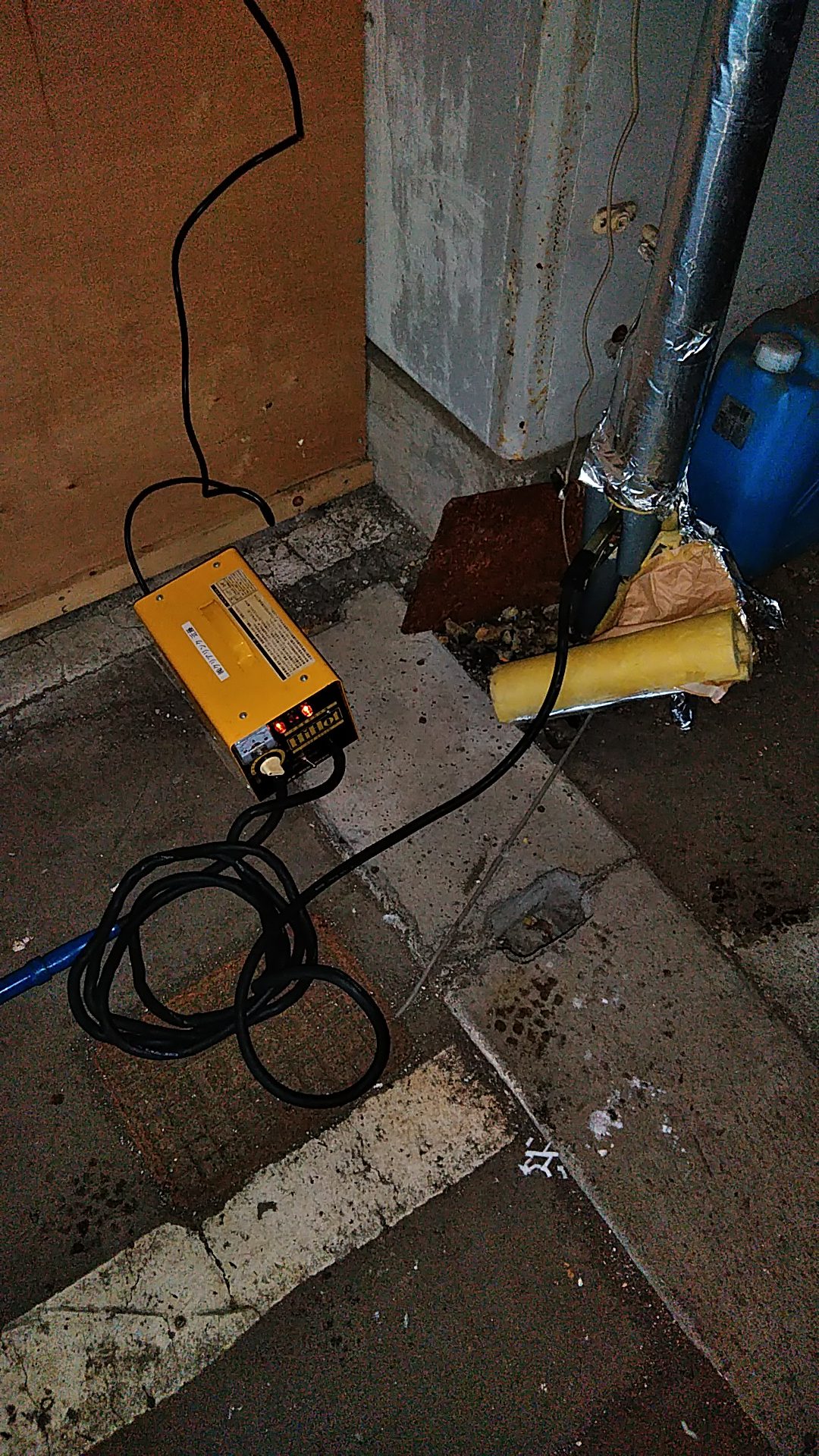 本日は提携先の管理会社様より凍結して水が出ないとの案件依頼があり出動しました。テナントに入っている、お店からの依頼で状況確認したところ昨日の閉店時に水抜きはされているようで、手順を確認しても間違いありません。配管によっては水が抜けにくいこともありますのでまずは電気にて解氷を試みました。凍結の解氷作業の目安は配管の太さや距離にもよりますが一般的には3分~6分くらいですが、目安の時間を超えても水が出てきません。次に考えられるのは地面から立ち上がっている配管が電気を通さない配管のため、そこで凍結している可能性がありますので配管を外して確認してみると凍結してました。凍結しているのが一部でしたので配管を外した際に外気に触れることで簡単に解氷されましたが、お客様は『水抜きしても凍結するのはおかしい!』とかなりご立腹でした。おっしゃる通りですね(;´Д`)後は管理会社とお客様の話し合いですが北海道の冬ってなにかと大変ですね(T_T)