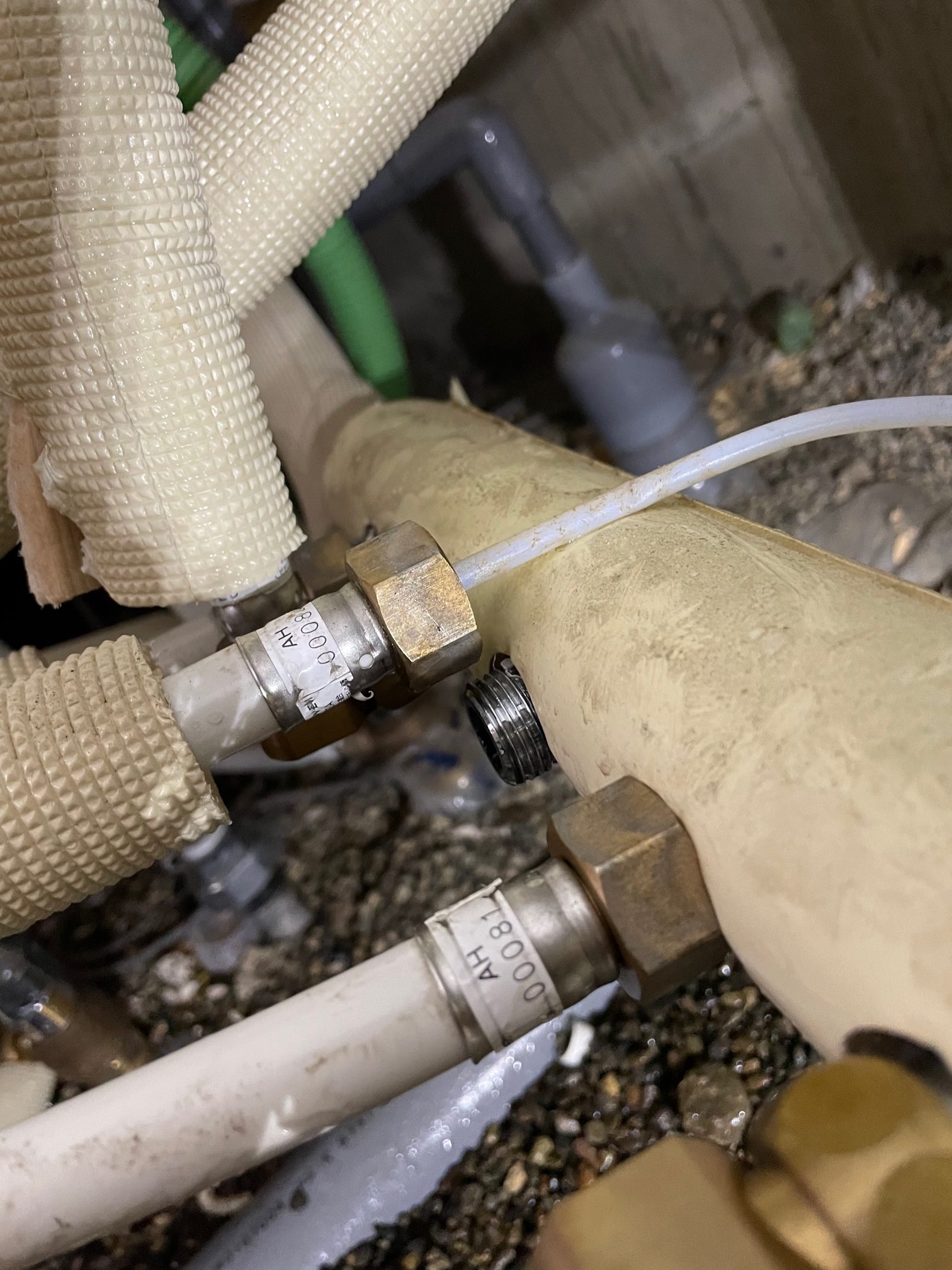 床下から台所までのこの経路だけが凍結していたみたいで、スチーム解氷により改善しました。