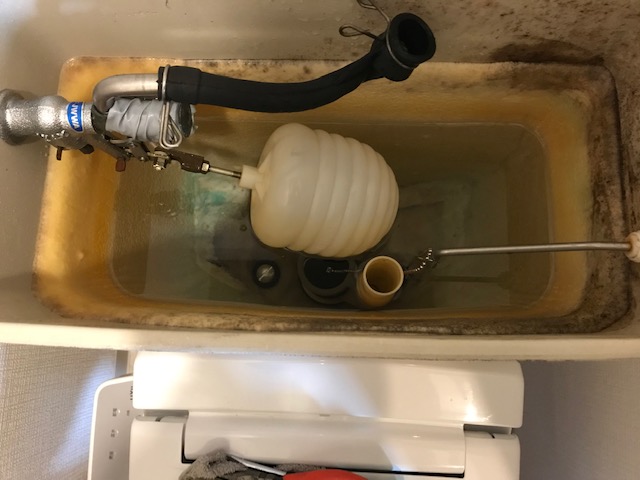 トイレタンクの中を調査してみると、部品の付き方に何か違和感を感じました。