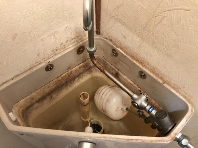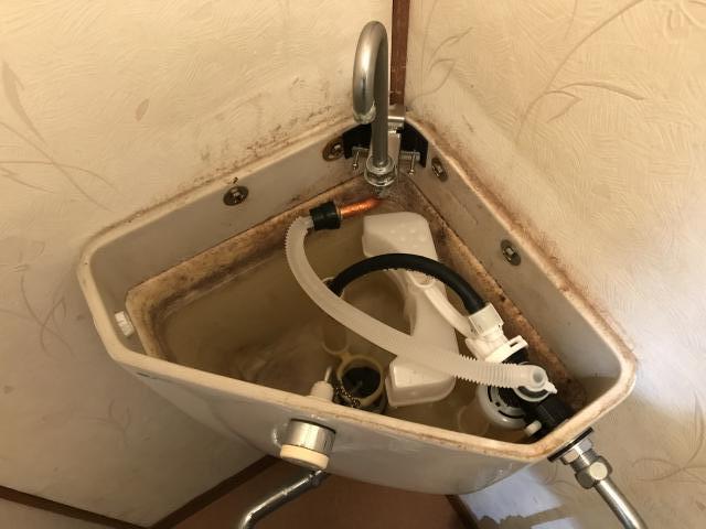 タンク内を調査すると、ボールタップと呼ばれる部品の劣化で水の開閉に不良が起きている状態でした。