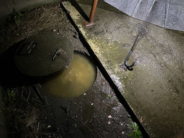 トイレを使用すると外にある排水桝から水が溢れてくる現象で、かなり汚水の臭いがするとのことでした。