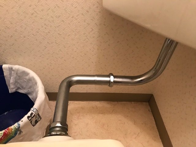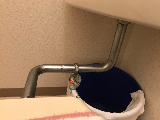 調査をしてみると、壁に設置されているタンクから便器に流れるまでの洗浄管という部分で漏水が起きていました。