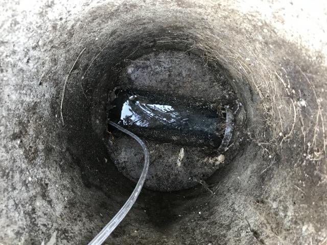 下流に行くと詰まっていないマスがあったので、そこから高圧洗浄を上流に向かって行い、詰まりは改善されました。