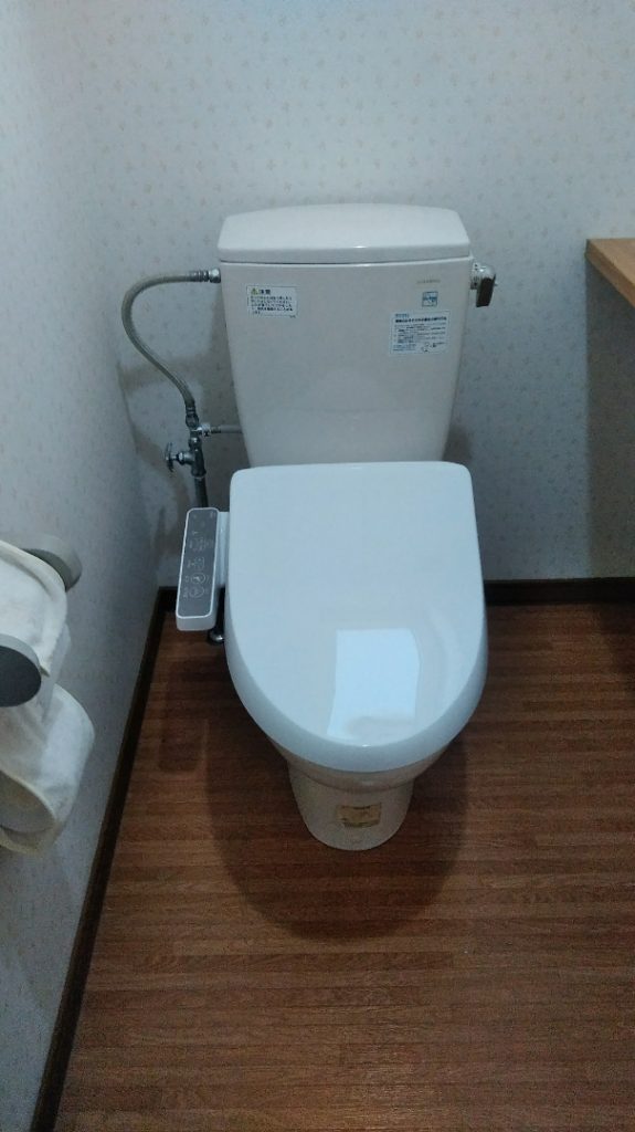 今日は17年使用しているウォッシュレットのノズルから水が出なくなったし本体を交換したいという依頼で行ってきました。拝見するとなかなか古いタイプです。現行のものはコンパクトでエコ商品なので長い目で見てもやっぱお得です。お客様もすぐ来てくれて、直ぐに交換して貰って助かったと喜ばれていました。!(^^)!
