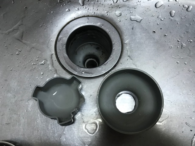 排水のトラップを外してみると、元々排水が小さいのに相まって、トラップ自体にヘドロのようなものが付着して水の流れを塞いでいました。