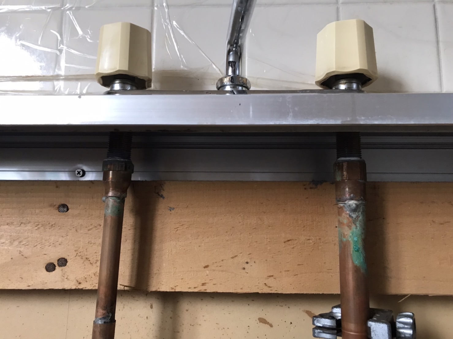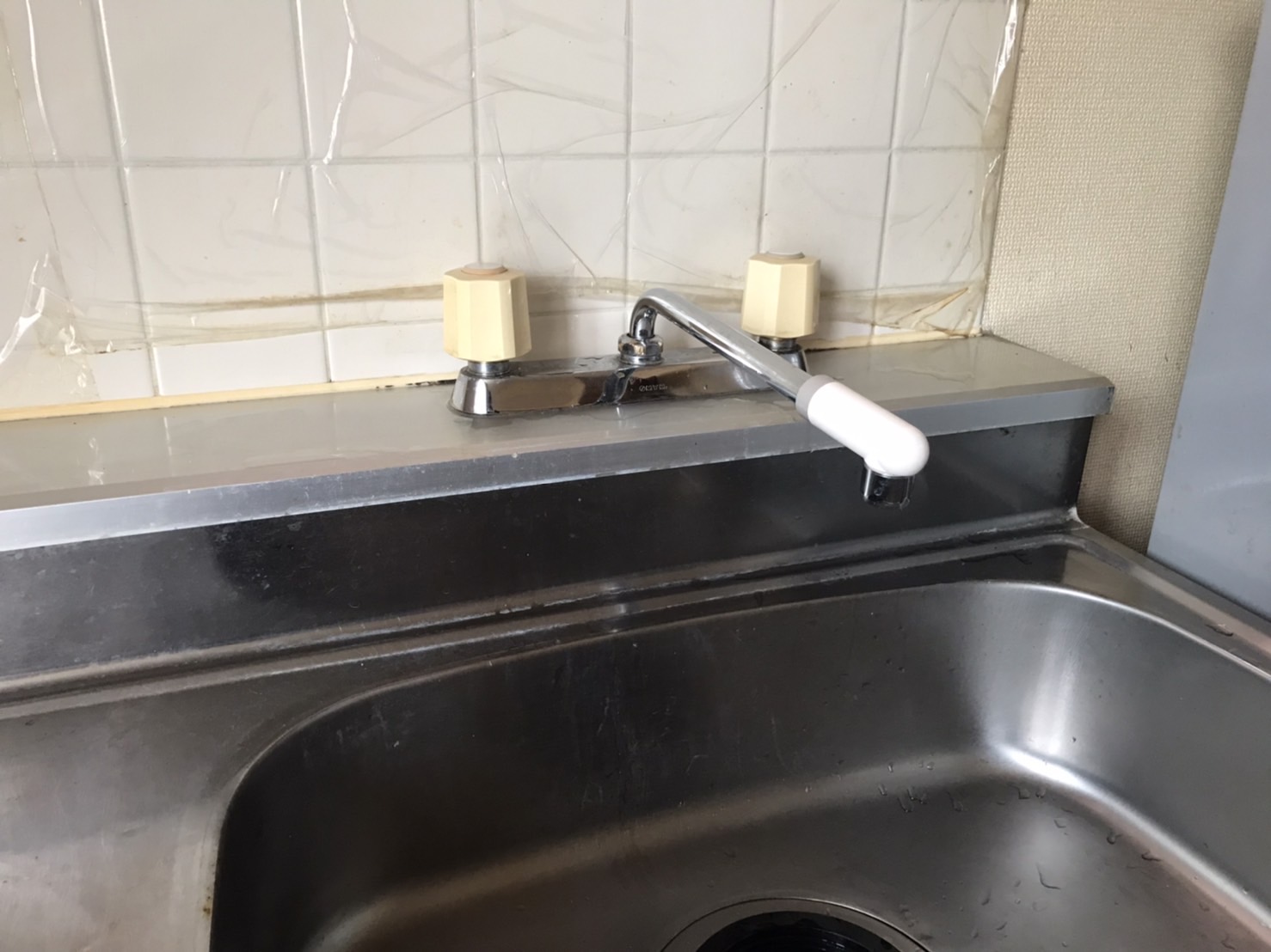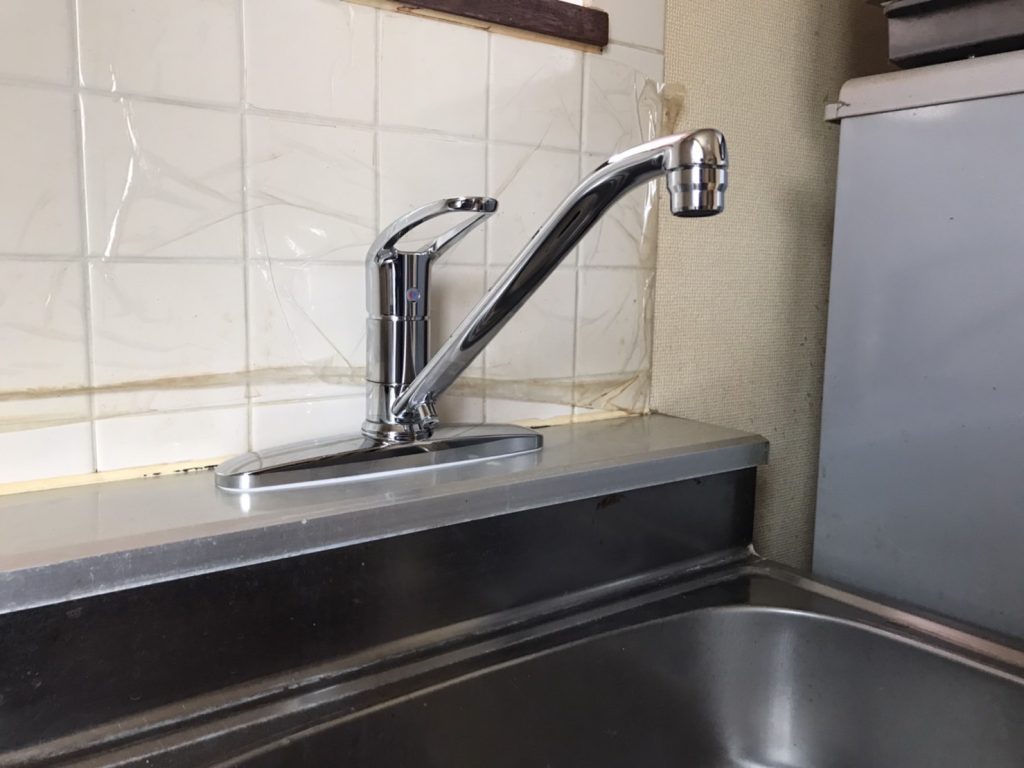年数も年数のため管理会社様も交換の意向があり、操作しやすいシングルレバータイプのもので交換作業を行いました。