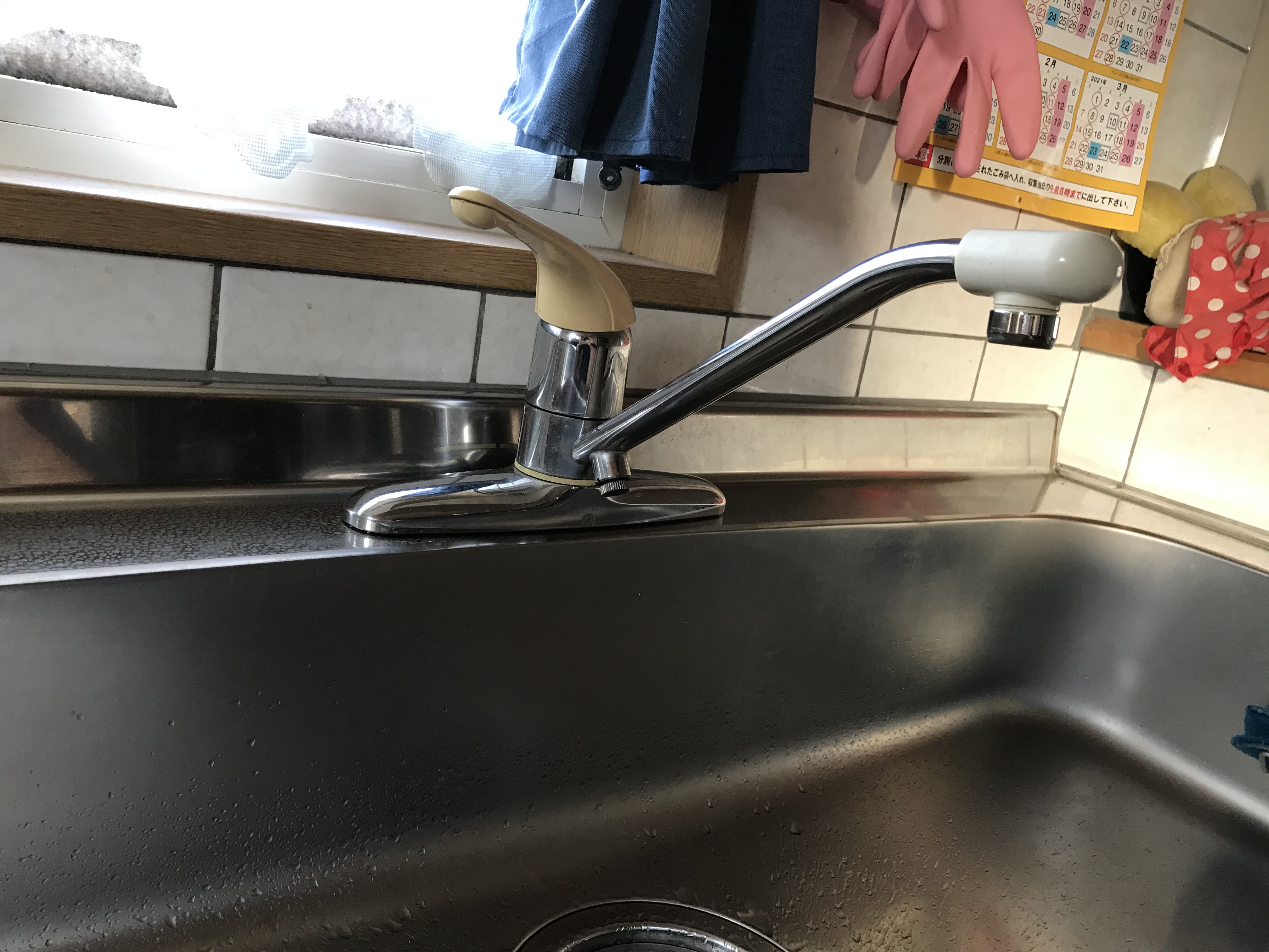 既存の蛇口は古いですが、特に不具合があったり破損している部分は見当たりませんでした。