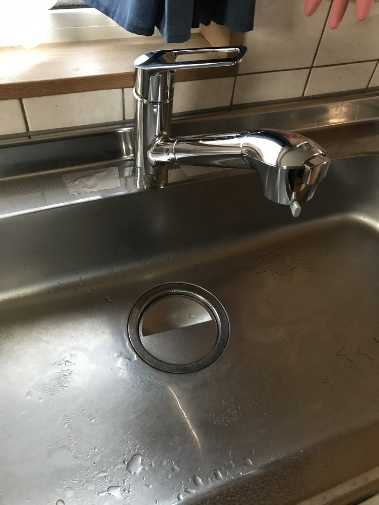 台所も多少加工してもいいとのことでしたので、蛇口の位置が不自然にならないように新しく真ん中に穴を開け、既存の穴は埋めることで施工しました。