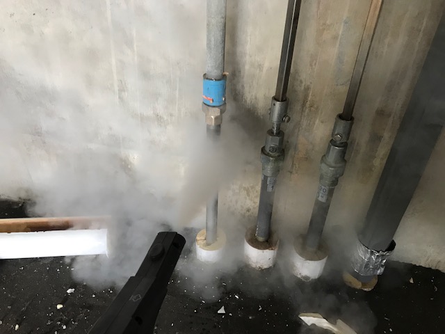 車庫内のスペースだけでの凍結でしたので、スチーム解氷をし、凍結は解消されました。