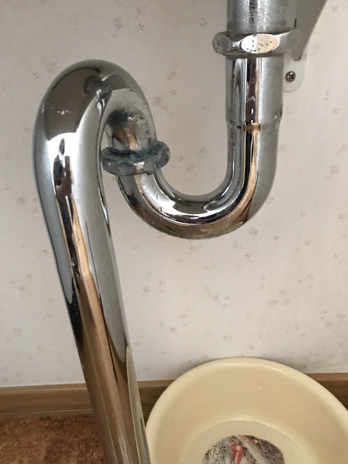 本日は、手洗い場の下の排水管から水漏れしてくるとのことでお伺いしました。