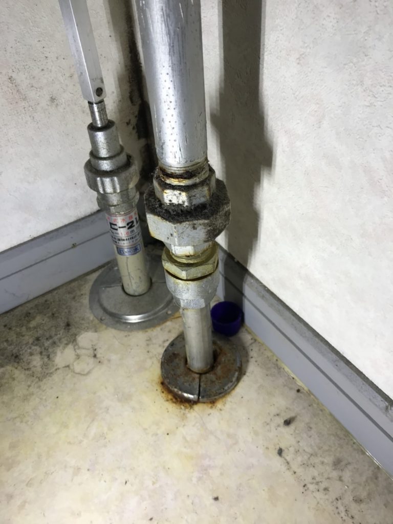 二階の方が水抜きをするロットが二階まで伸びており、その隣の配管の繋ぎ目から水がにじみ出てきていました。
