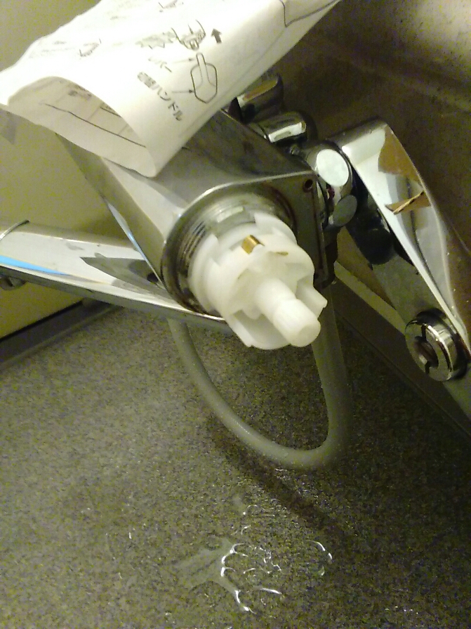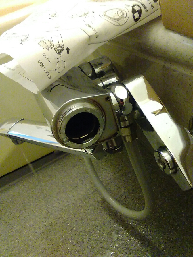 今日は浴室のシャワーと蛇口から出る水の切り替えがずれて使いずらいとの事で呼ばれました。点検してみると確かにレバーがずれて