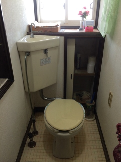 隅付きタイプのトイレタンクで、中にある管が折れてしまったことと、壁の汚れがひどいのがきっかけでした。