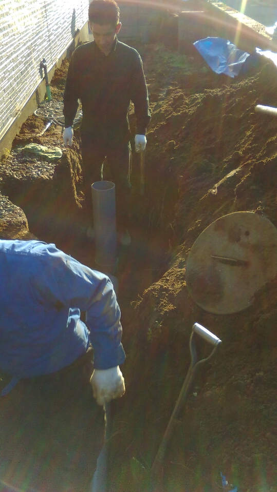 時過ぎまで配管出来上がるまでかかりました。そして次の日は埋め戻し作業です。2㎥(シャベル2杯分の土)コンクリートの撤去、粉砕です。天気が良かったので良かったです。勾配が悪く今まで何度も