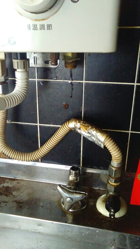 今日は提携会社の依頼で給湯の繋ぎ目から水が漏れているので直して欲しいとの依頼で行ってきました。拝見すると給湯器に繋がっているフレキ管が凍結により管が膨張して破裂していました。給湯器自体は破裂していませんでしたのでひと安心。フレキ管を加工しなおして繋げて完了です。お湯を使えるのでお客様も安心されていました。(*^-^*)
