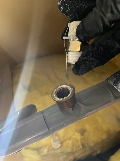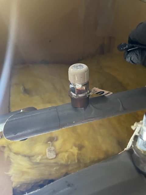 ちょうど近くに点検口があったので調査してみると、吸気弁と呼ばれる部品から水が漏れ出していました。
