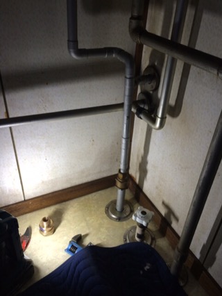 確認してみると給水管の立ち上がり付近から水漏れしていました。25年位の築年数で劣化により水漏れしているようでした。お客様に原因と修理内容、金額をお伝えし作業させて頂きました。お客様も夜にすぐ直せて喜んでいました。