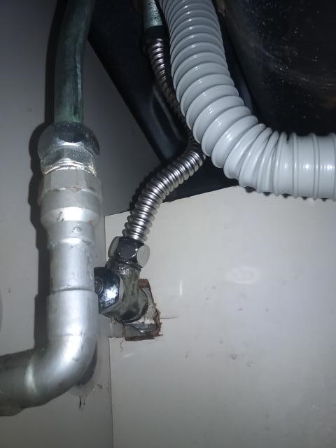 洗面台自体がかなり古く、この繋いでいるフレキ管もサビでかなり劣化しているようでした。