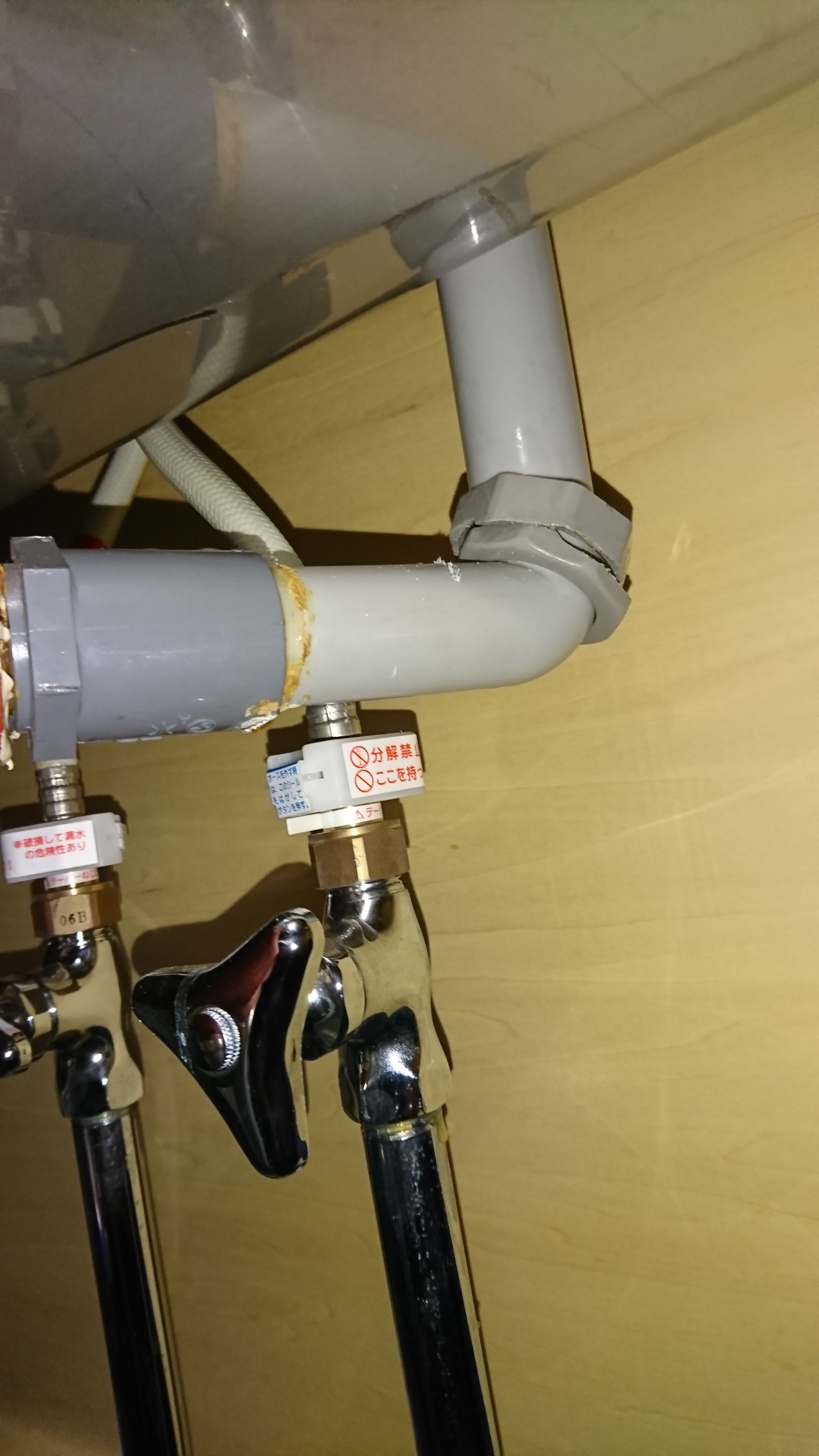 パイプと排水トラップの間で破損が見られ、結構な油などのよごれも滴っていました。