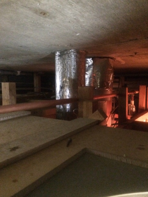 壁の中から音がしてるように聞こえましたが、天井から壁の方に流れていたので、原因は天井裏だったんですね。