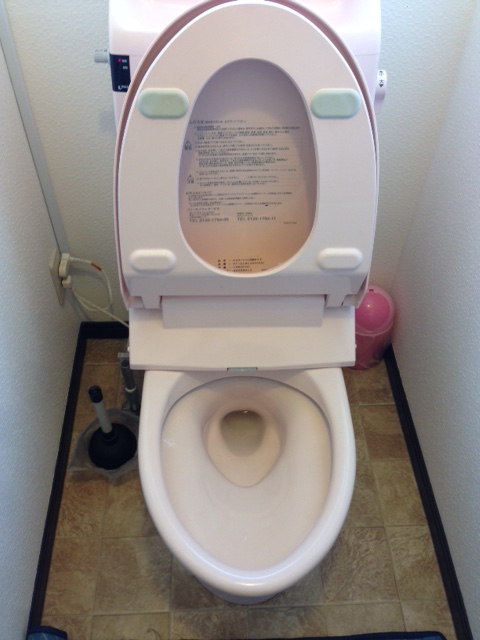 小さなお子様もいるということで、なにか異物を落とした可能性もあるとのことなので、トイレ本体を脱着することにしました。
