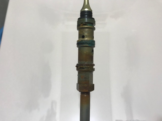 水抜栓のシャフトを取り出してみると、先端のピストンについているパッキンが粉々でした。